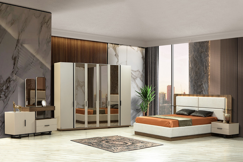 Erzin 6-deurs Kleerkast met Spiegel – Strand