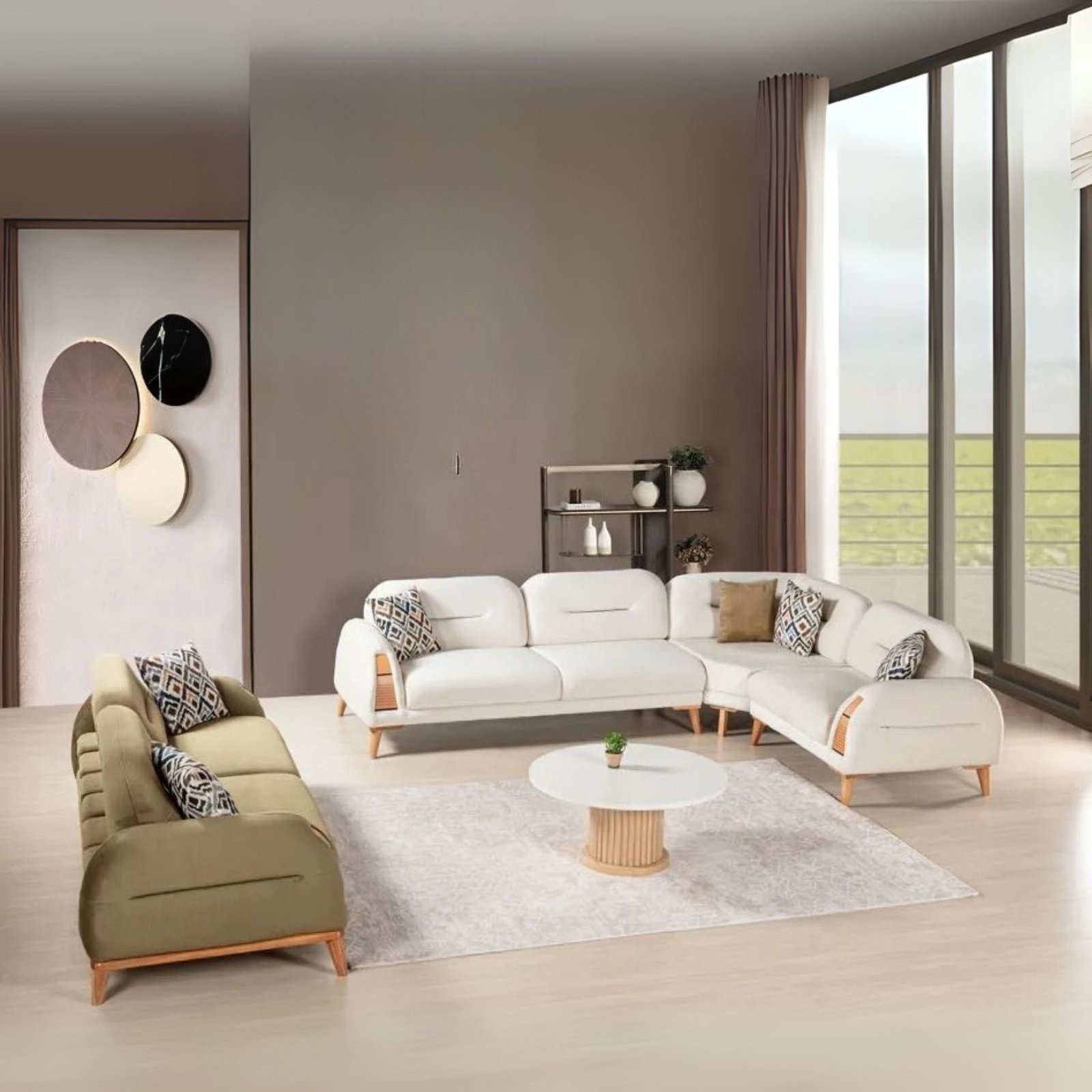 Elke set kan volledig gepersonaliseerd worden met verschillende stof- en kleurmogelijkheden, zodat ze naadloos aansluit bij jouw interieurstijl. De duurzame constructie en de kwaliteitsvolle materialen zorgen ervoor dat je jarenlang kunt genieten van comfort, schoonheid en betrouwbaarheid in je leefruimte.